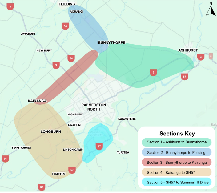 The proposed Manawatū Regional Freight Ring Road aims to make freight movement safer and easier around our city — by reducing heavy traffic on our city roads and improving connections between our key industrial areas and State Highways.